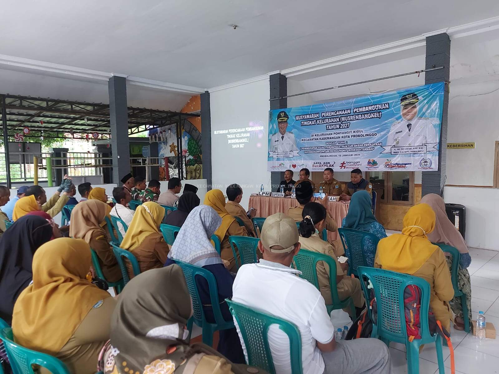 KADEMANGAN — Pemerintah Kelurahan Pohsangit Kidul, Kecamatan Kademangan, Kota Probolinggo melaksanakan Musyawarah Perencanaan Pembangunan (Musrenbang) pada Senin, 19 Januari 2026, bertempat di Pendopo Kelurahan Pohsangit Kidul. Kegiatan dibuka secara langsung oleh Camat Kademangan, Abdi Firdausi, S.STP., M.M. dan diikuti oleh Ketua RT/RW, tokoh masyarakat, tokoh agama, perwakilan difabel, Babinsa, serta Bhabinkamtibmas. Musrenbang ini menjadi wadah strategis untuk menampung aspirasi dan usulan